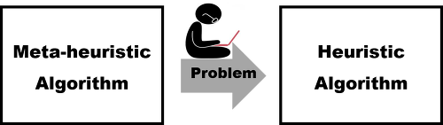 Meta-heuristic Algorithm도 이와 마찬가지입니다. 대표적으로 많이 사용되는 Genetic Algorithm은 sorting이나 TSP, NRP 등 많은 문제에 적용이 가능하므로 Meta-heuristic Algorithm이지만 TSP에 적용하는 과정에서 문제에 맞게 몇 가지 규칙을 정하게 되면 Heuristic algorithm이 되는 것입니다.